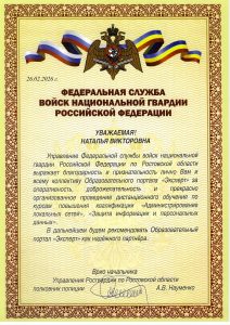 Благодарственные письма компании Эксперт в Ростове-на-Дону